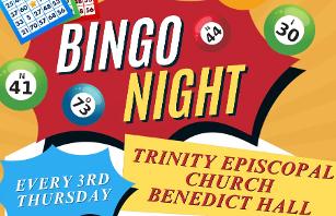 Bingo -- monthly gatherings for a bingo game (third Thursdays at 6:15 pm) with snacks & fellowship.